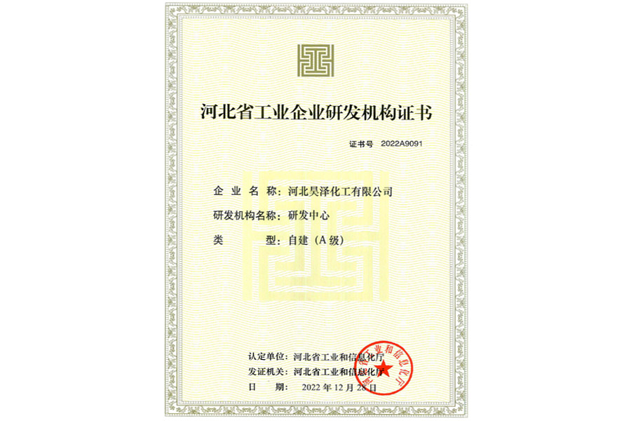 河北省工業(yè)企業(yè)研發(fā)機(jī)構(gòu)證書