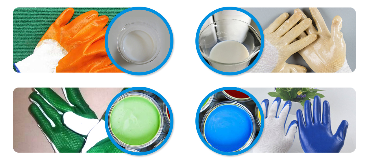 該類產(chǎn)品主要應(yīng)用于勞保手套浸漬,有著耐磨光澤度高,柔韌度好的特點(diǎn)。